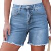 Women Trendy High Waisted Stretchy Denim Summer Raw Hem Mom Long Shorts Cutoff Jorts